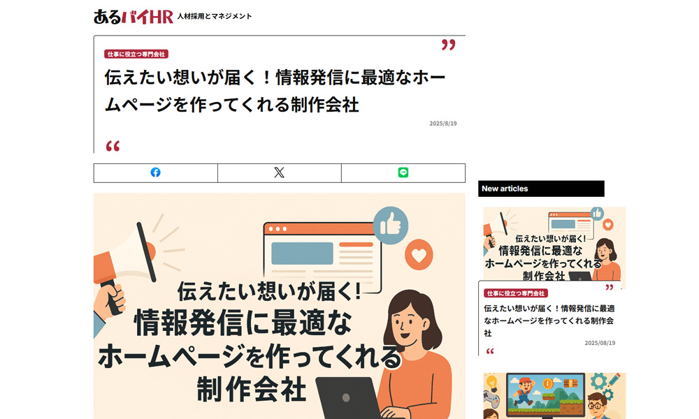 株式会社ヒプスターが運営するアルバイト情報メディアサイト「あるバイ」の「伝えたい想いが届く!情報発信に最適なホームページを作ってくれる制作会社」にて北川企画をご紹介いただきました。