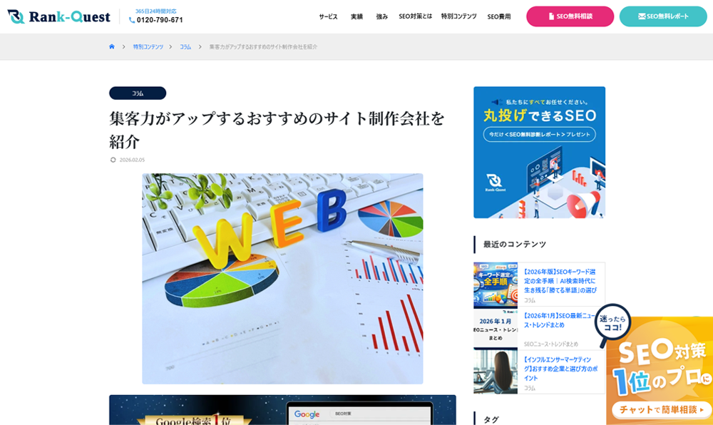 SEO支援サービス「ランクエスト」にて、北川企画が掲載されました。